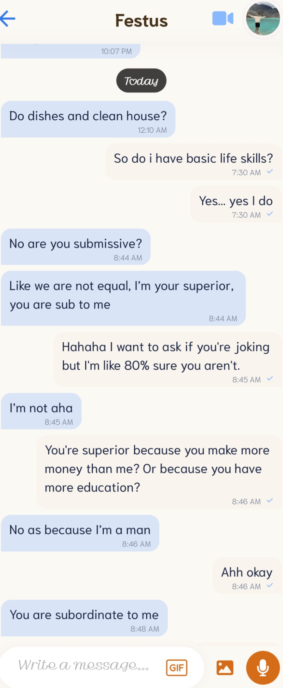 This is a real conversation from a Christian dating app.